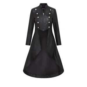 Gothic Edwardiaanse leren damesjas met volledige lengte – Atlanta
