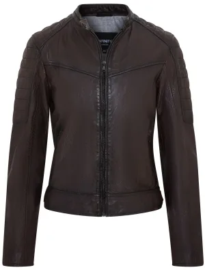 Dames Bruin Retro Gewatteerd Leren Bikerjack – Horten