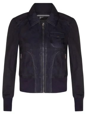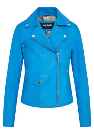Dames Blauw Classic Brando Biker Leren Jack – Broome