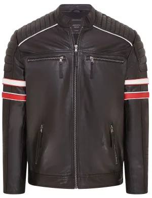 Heren Zwarte Gewatteerde Leren Biker Racing Jack – Brevik