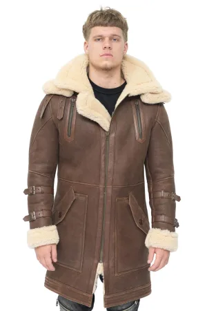 Heren 3/4 warme lederen schapenvacht trenchcoat-Medina