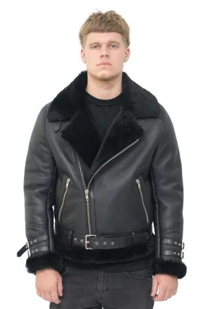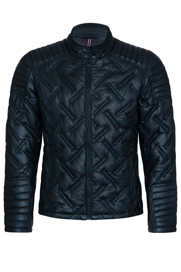 Heren Zwarte Leren Gequilt Motojas – Manaus