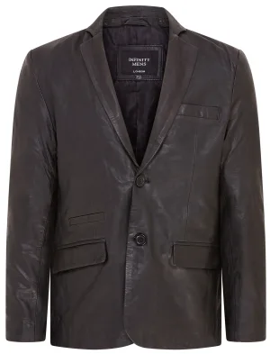 Heren Zwart Slim Leren Italiaanse Blazer Jas-Somero