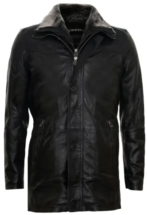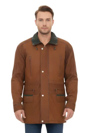 Heren zwartbruine zachte Italiaanse leren parka jas-Gatton