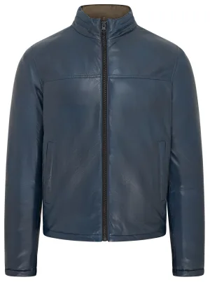 Blauw omkeerbaar leren bomberjack voor heren – Raufoss