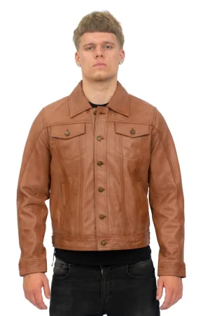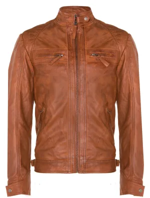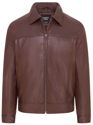 Heren Bruin Retro Klassiek Leren Harrington Bikerjack – Drammen