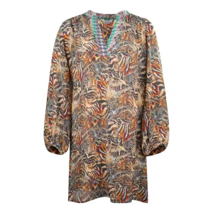 Inoa Makucha Panthera 1202117 bruine zijden gegolfde gelaagde jurk