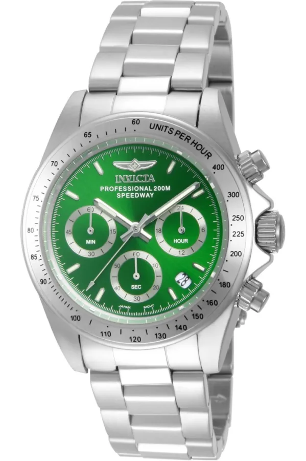 Invicta Speedway 14384 Heren Horloge – Quartz Uurwerk – Roestvrij Staal met groene Wijzerplaat – 39mm