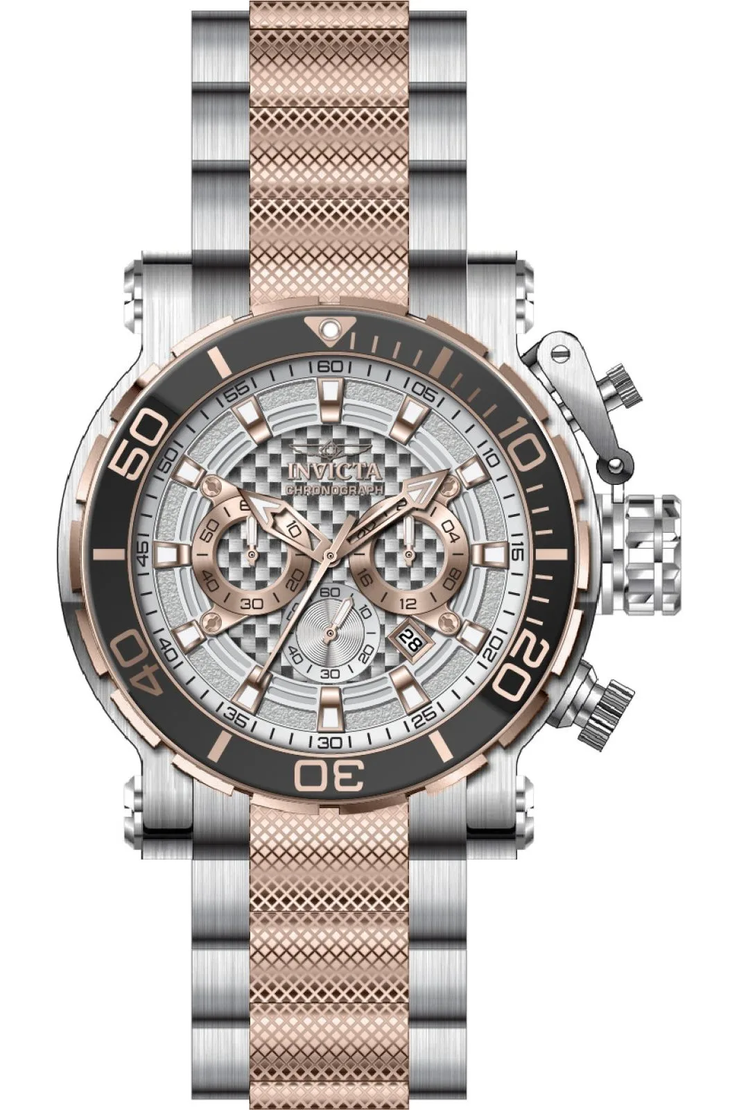 Invicta Subaqua – Poseidon 48556 Heren Horloge – Quartz Uurwerk – Roestvrij Staal met rosegouden Wijzerplaat – 55mm