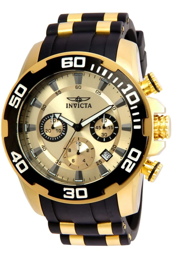 Invicta Pro Diver – SCUBA 22346 Heren Horloge – Quartz Uurwerk – Roestvrij Staal met gouden Wijzerplaat – 50mm