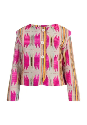 IZIA Tussenjas turquoise / donkergroen / pink / wolwit