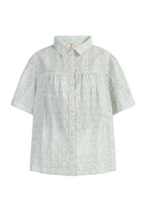 IZIA katoenen blouse Dames Gebroken wit met zilveren strepen en stippen