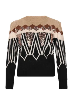 IZIA Jumper Dames Beige Veelkleurig