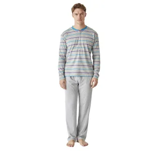 JJB12 Katoenen pyjama met lange mouwen en ronde hals voor heren