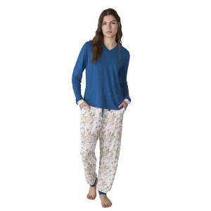 JJBEP1903 Damespyjama met lange mouwen en V-hals