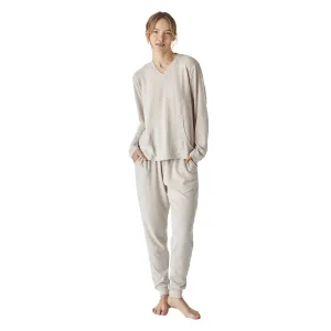 JJB5 Zacht gebreide damespyjama met lange mouwen en V-hals