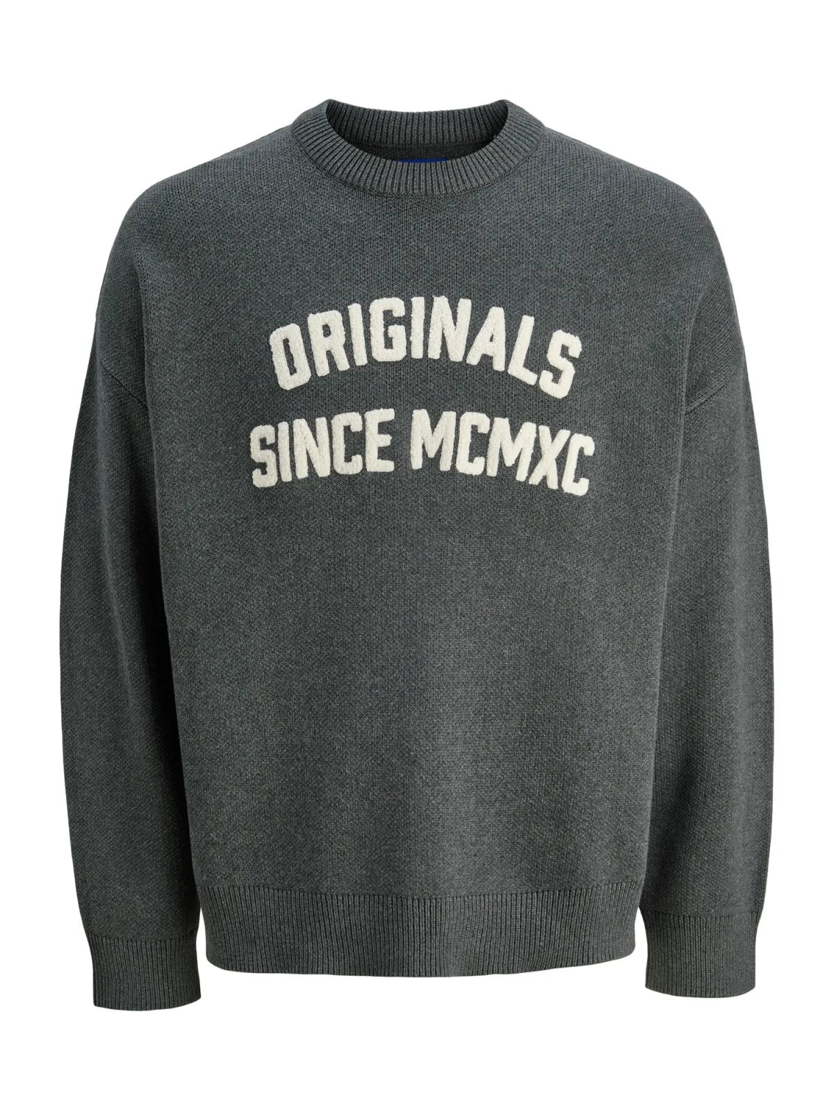 JACK & JONES Trui ‘JORMEADOWS’ donkergrijs / wit