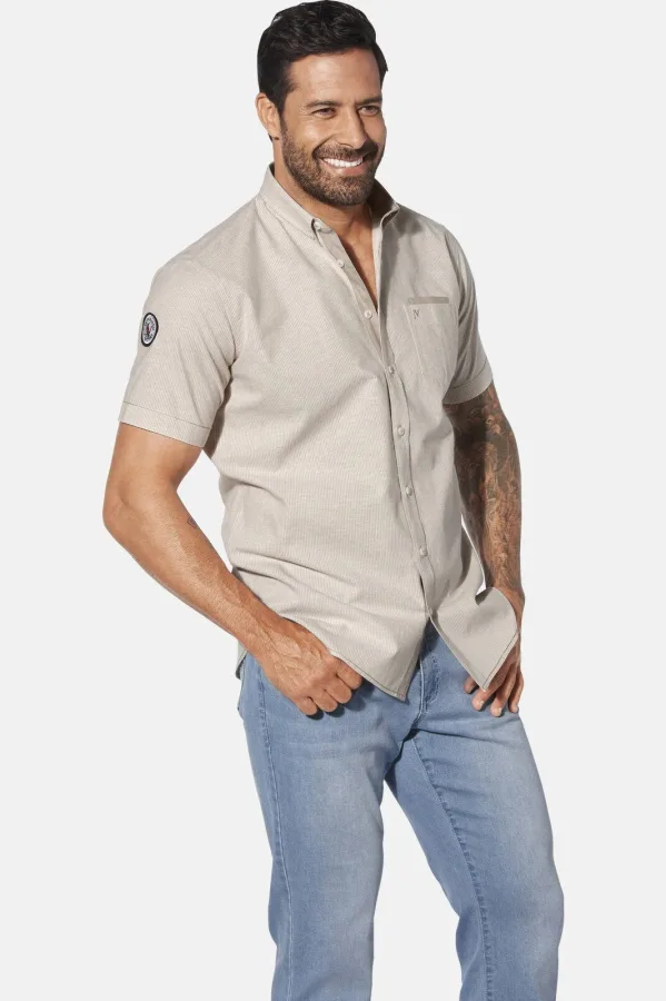 Jan Vanderstorm casual overhemd MILOS Plus Size lichtbruin