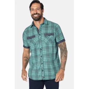 Jan Vanderstorm loose geruit casual overhemd Plus Size turquoise