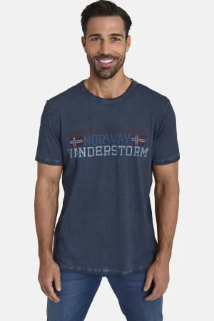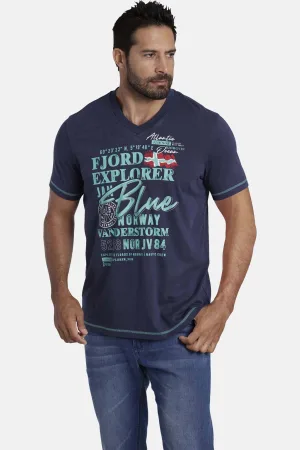Jan Vanderstorm regular fit T-shirt DIETHELM Plus Size met printopdruk donkerblauw