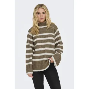 JDY Oversized trui ‘JDYJusty’ lichtbeige / donkergroen