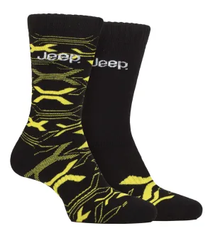 Heren Bamboe Werk Bood Socks | Jeep | Zachte en Ademend Dikke Heavy Duty Gevoerde Sokken, Gebreide Geribbelde Wandelsokken – Zwart / Geel