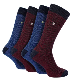 Heren Katoenen Dress Sokken | Jeep | Middelzware Gebreide Spirit Sokken, Casual Ribbelpatroon Dagelijkse Sokken – Petrol / Paars