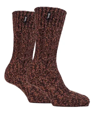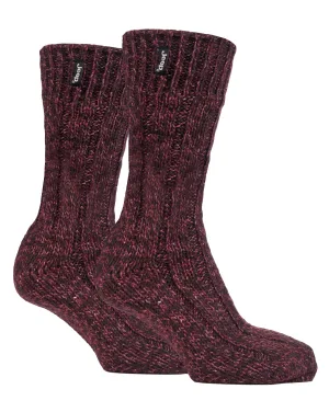 Heren Wol Wandelsokken | Jeep | Gebreid Geribbeld Ontwerp Gevoerde Bootsokken voor Trekking, Hardlopen, Wandelen – Bruin / Bessen