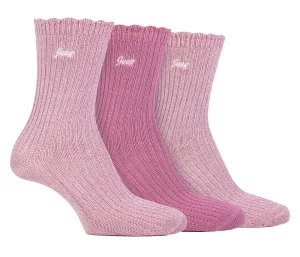 Jeep – 3 paar katoenen wandelsokken voor dames – Paarse Roos