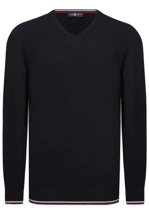 Jimmy Sanders V-Neck Sweater – V Trui – 100% Katoen Heren Navy – S