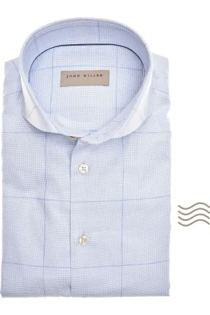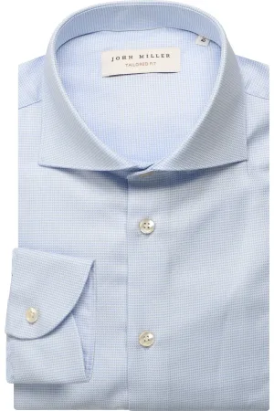 John Miller Overhemd lichtblauw, Pied De Poule