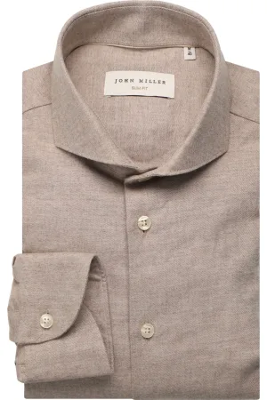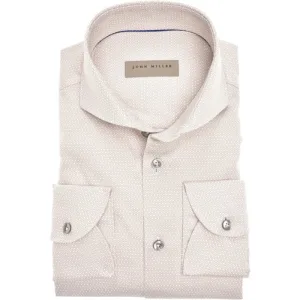 John Miller Tailored Fit Overhemd lichtbruin, Ruit