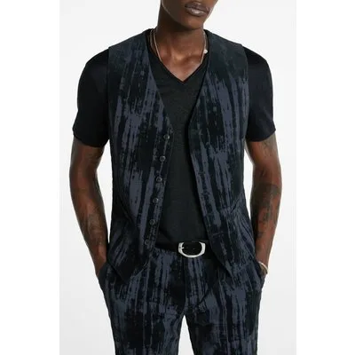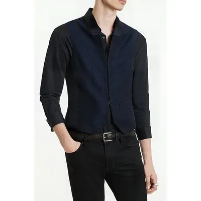 John Varvatos Shawl Collar H B Closure Vest Blue Black
