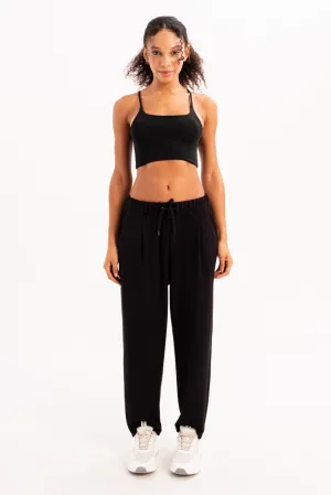 JUSTEVER Oversized Fit Elastische Taille Zakken Relaxte Pasvorm Zwarte Dames Joggingbroek – Flex