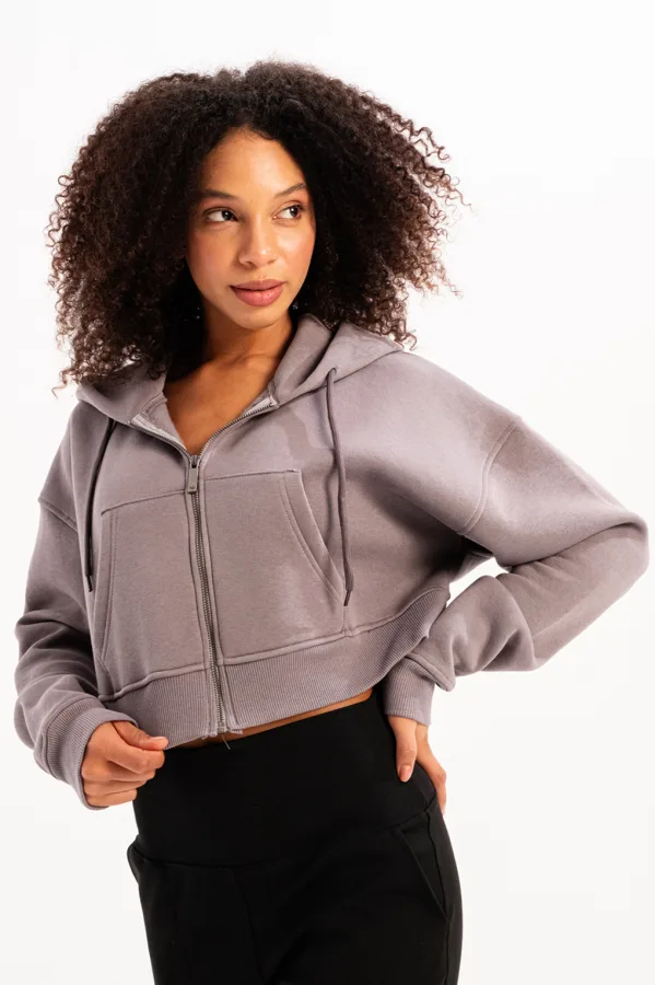 JUSTEVER Crop Hooded Zippered Kangaroo Pocket Raised Hoodie Bitter Coffee Women’s Sweatshirt – Lumen