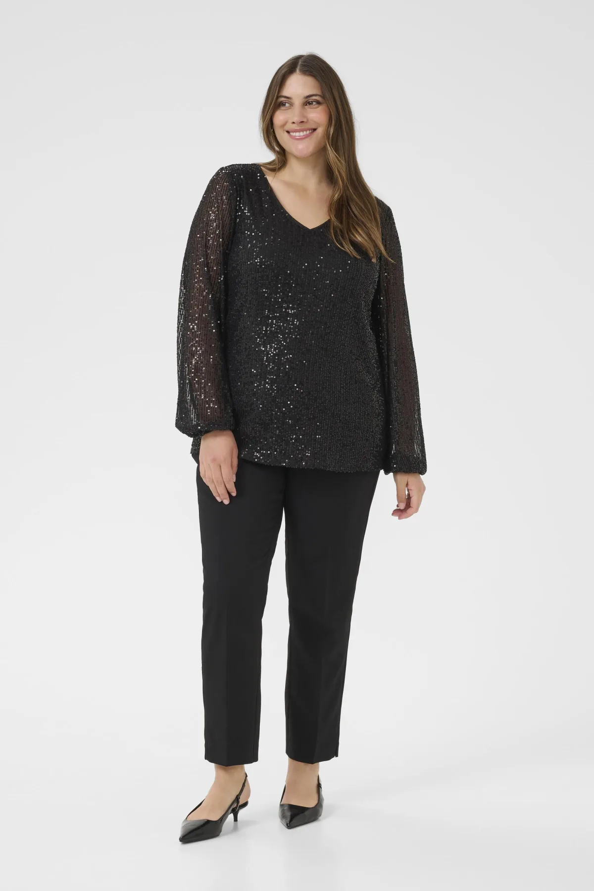 KAFFE CURVE Gebreide top ‘KC Regitta’ zwart