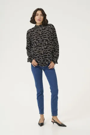 Blouse met lange mouwen Regular fit Black/Beige Abstract Print