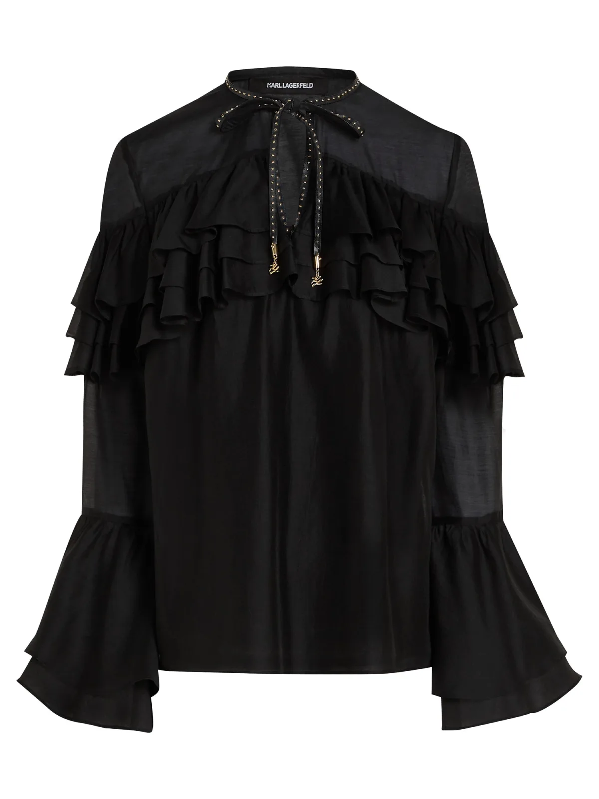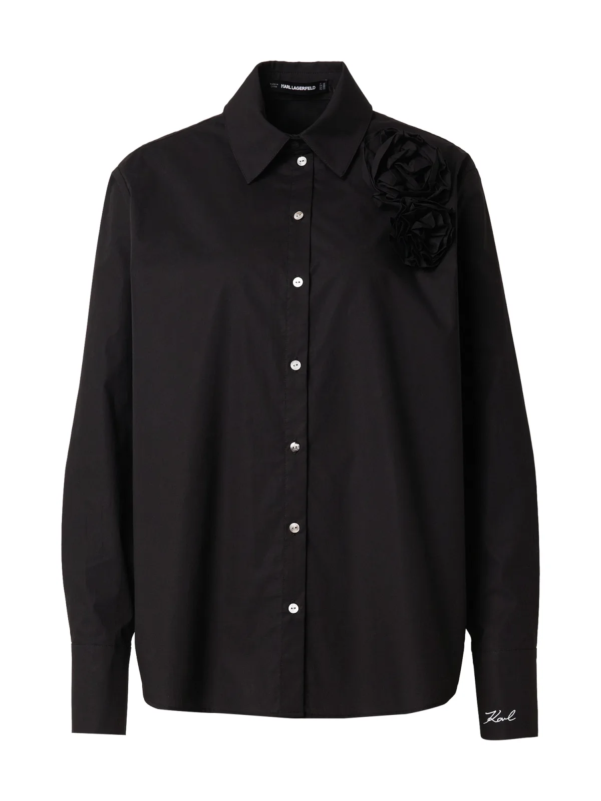 Karl Lagerfeld Blouse ‘FLOWER POPLIN’ zwart