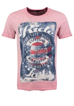 Key Largo Shirt ‘Fast’ blauw denim / oudroze / rood / wit