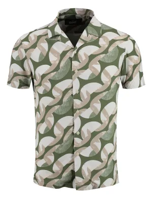 Key Largo Overhemd ‘MAGMA’ beige / groen gemêleerd / wit