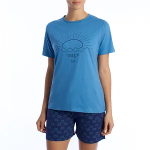 Damen-Sommerpyjama aus 100 % Baumwolle KL40000 Kurzarm-T-Shirt und Shorts, Frühlings-Sommerpyjama