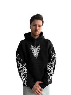 Kleidermafia Sweatshirt ‘Oversize Bull Fearless Hoodie – Black and Red’ zwart
