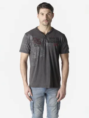 KOROSHI Shirt grijs / vuurrood / zwart / wit
