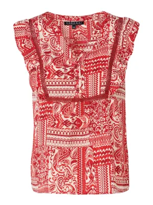 KOROSHI Blouse lichtbruin / rood / zwart / wit