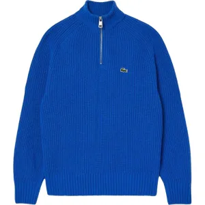 Lacoste Heren Ritssluiting Gekaarde Wollen Trui met Hoge Hals (Blauw)