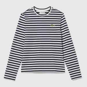 Women’s Lacoste Striped Long Sleeve T-Shirt in Navy