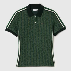 Lacoste slim-fit poloshirt voor dames met Monogram Jacquard-patroon in groen.