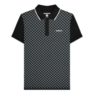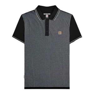 Lambretta Heren SS24 Houndstooth Poloshirt (Zwart/Ijzer)