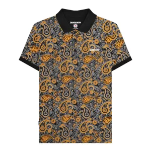 Lambretta Heren Paisley Poloshirt (Zwart/Goud)