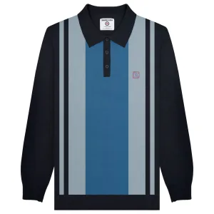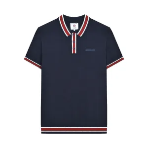 Lambretta Heren Valero Gebreid Gestipt Poloshirt met Korte Mouwen (Marine)